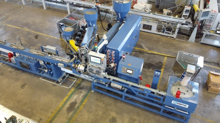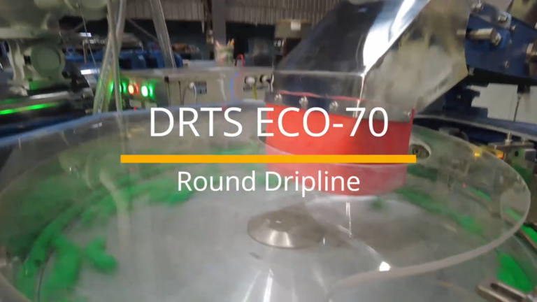 The DRTS Round Dripper Pipe Production Line comes in three models. Our top speed production line the MAX-120 is designed to insert and perforate up to 500 drippers per minute at a line speed of up to 120 meters of pipe per minute (with an automatic coiler). The PRO-80 includes our Semi-Automatic Coiler & Accumulator to allow for line speeds of up to 90 meters per min and 500 drippers per min. Our Eco-70 Model is designed to insert and perforate up to 300 dripper per minute and line speed of up to 70 meters per minute. All production lines feature a 3 layer Cross-Head to increase efficiency and productivity and offer an Optional Vision QC Control System.