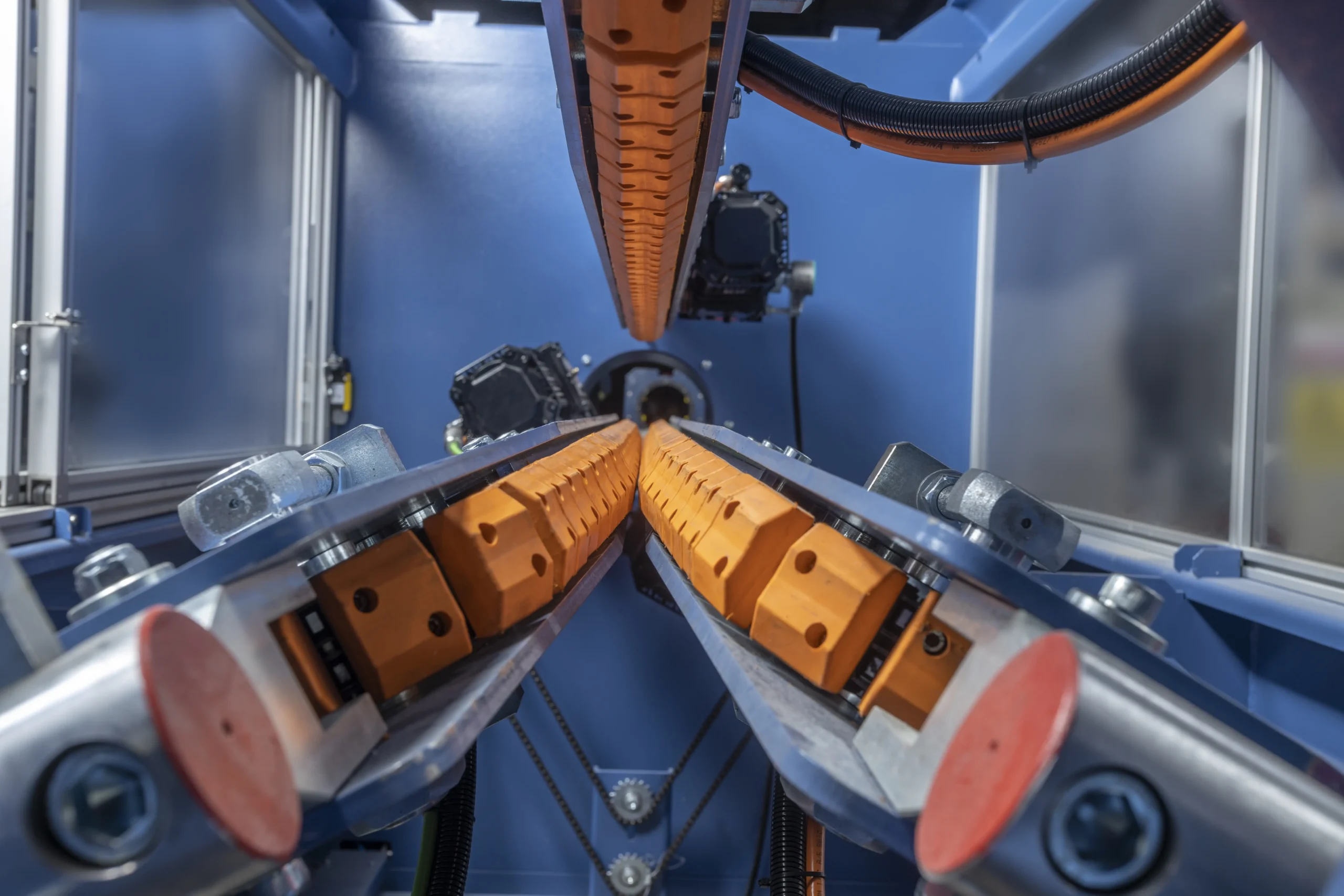 The innovative design of the DRTS Hybrid Pipe Haul-Off / Puller will add versatility and efficiency to your pipe manufacturing process. With our unique design we are overcoming a major bottleneck in pipe production. In pipe production lines of 16-63mm and 20-110mm, the production speeds of the smaller sizes (up to 32mm) are affected by the inability of the puller (designed for the largest size in the specific line) to run at higher speeds. For this we have designed our Hybrid puller, which is actually 2 pullers in 1 frame all controlled by a single HMI control panel. For smaller pipes (16-32mm) a dual lintex belt puller is used that can run at speeds of up to 100 meters per minute, which allows smaller pipe diameter production at higher speeds and increased efficiency. When manufacturing pipe at larger diameters (40-110mm) the machine automatically uses the double/triple arm caterpillar belt system that has the necessary torque without the need of machine change over. Read More