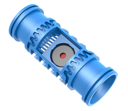 The elevated filters draw from faster moving water that is closer to the center of the pipe. The higher velocity helps keep the filter surface clean while the elevated filter entrance inhibits solids from settling on it between flow cycles, regardless of dripper orientation in the pipe.